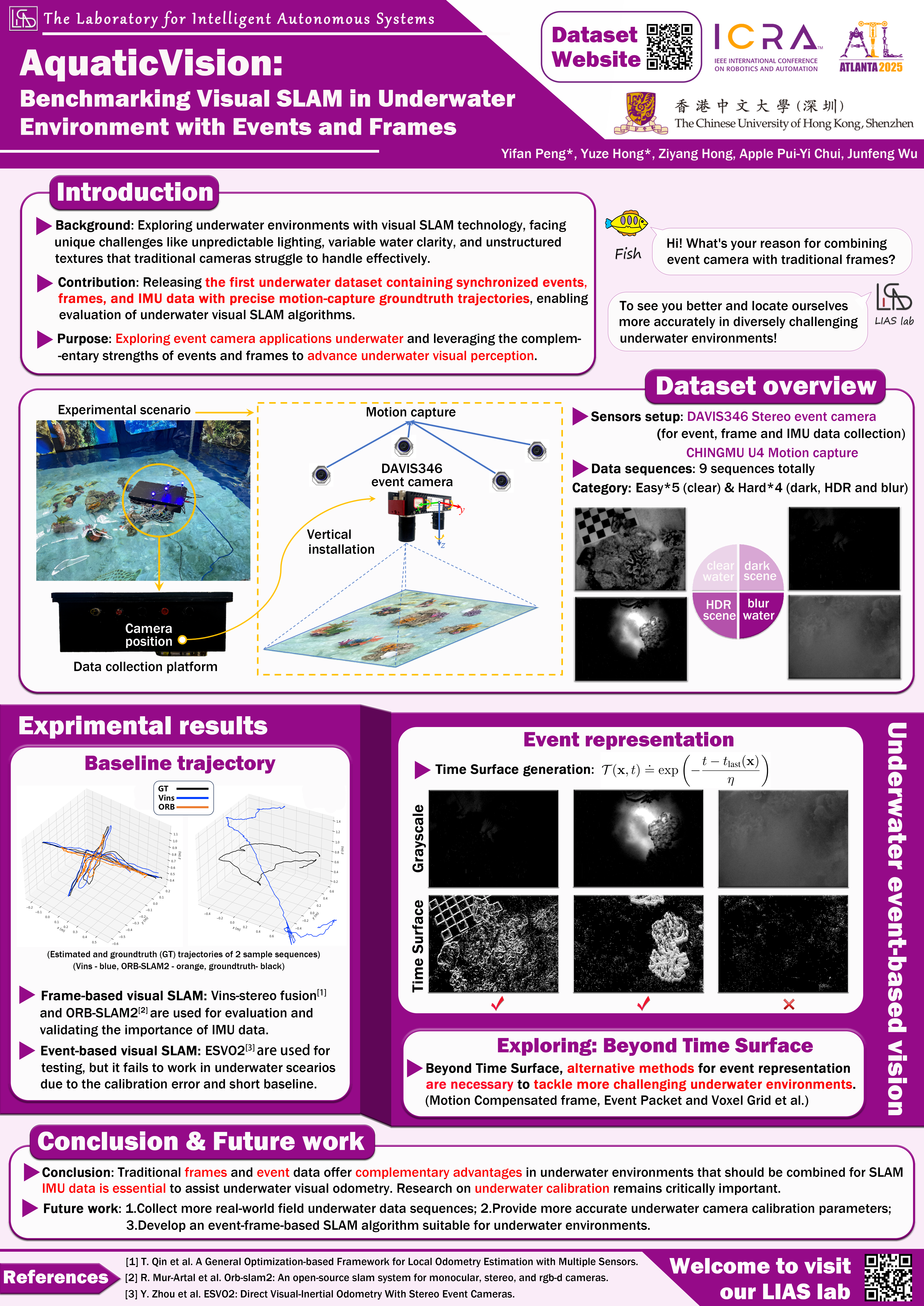 We released an underwater dataset captured by event camera and present the poster at 2025 ICRA Workshop on Field Robotics: